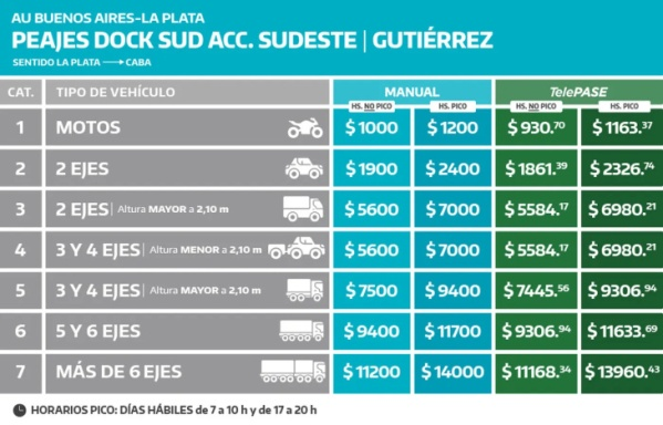 Desde este viernes rigen nuevos valores en los peajes de la Autopista Buenos Aires La Plata, a partir de la aplicación del aumento trimestral que quedó establecido en la audiencia pública realizada en agosto del año pasado del coeficiente de variación.