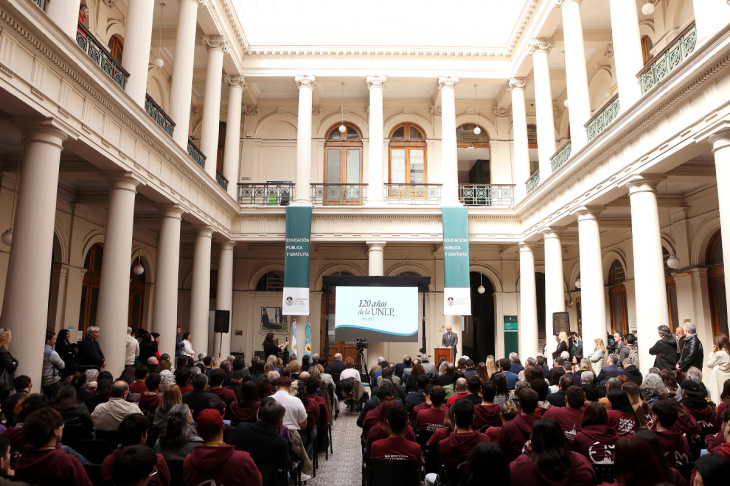La Universidad Nacional de La Plata (UNLP) celebró esta mañana su 120° aniversario con un acto cargado de historia, música y reconocimientos, encabezado por su presidente, Martín López Armengol. La ceremonia se desarrolló en el Rectorado y reunió a decanos y decanas de las 17 facultades, directores de colegios, autoridades, gremios docentes y no docentes, la Federación Universitaria de La Plata (FULP) y representantes de toda la comunidad universitaria.