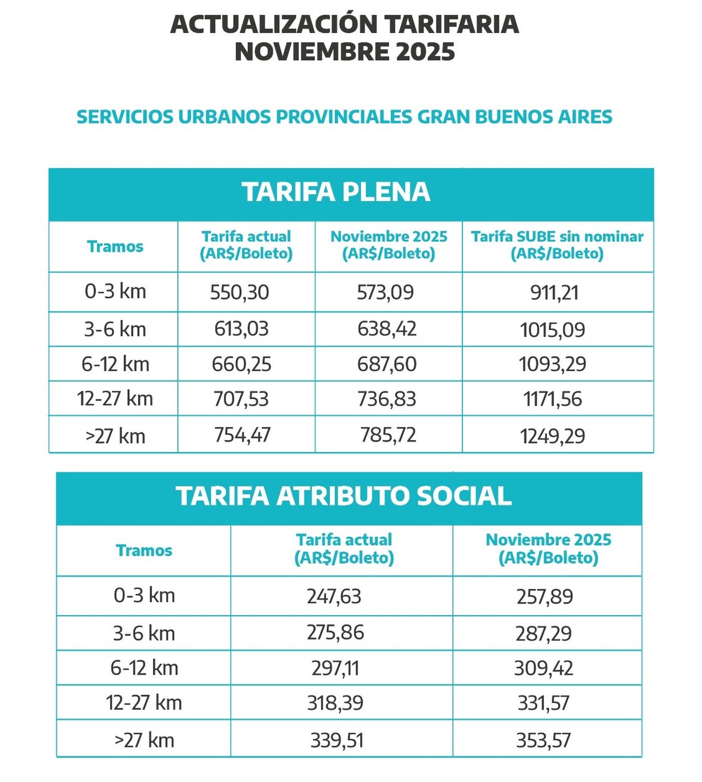 Con los montos ahora sí confirmados oficialmente por el Ministerio de Transporte bonaerense, los siguientes serán los valores que regirán desde el sábado: