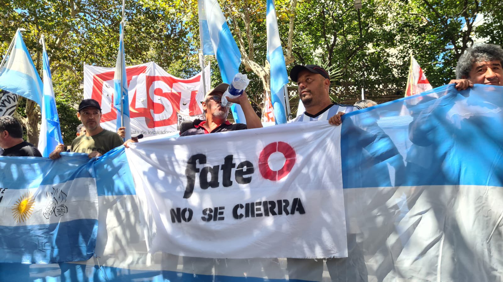 Los trabajadores de FATE se movilizaron este jueves a la Legislatura de la Provincia de Buenos Aires para reclamar por su proyecto de “ocupación temporaria” de la planta industrial de San Fernando.